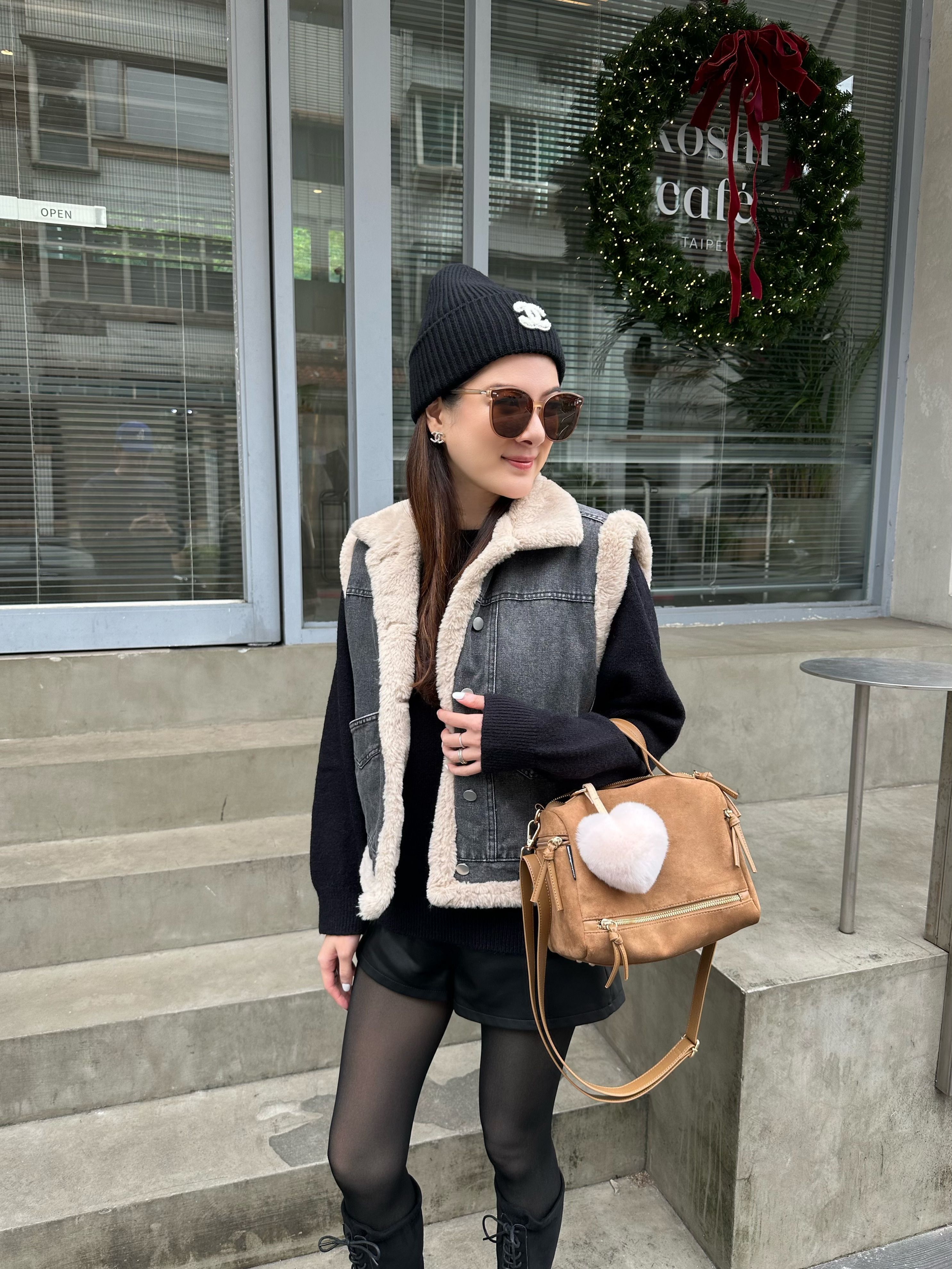 率性的灰黑色+內裡整件的淺咖色毛毛!