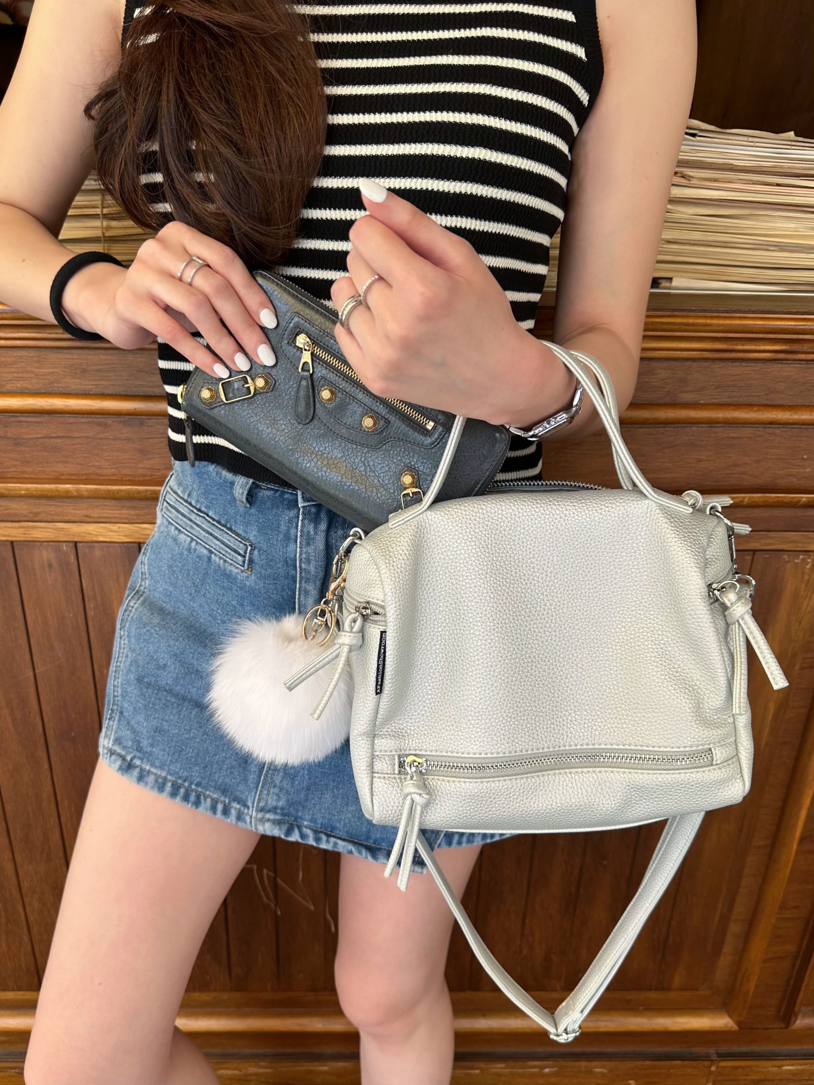 獨家訂製帶有珠光的『銀白色』搭配銀色五金飾扣